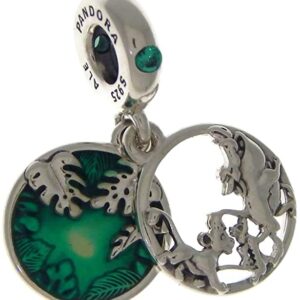 Charm colgante Pandora Simba, Timón & Pumba en plata de primera ley, adornado con cristales verdes y esmalte verde.