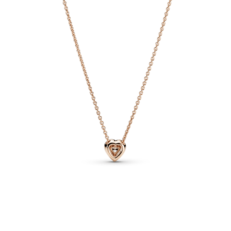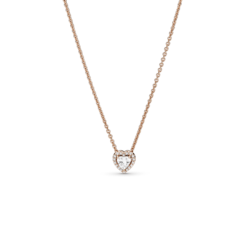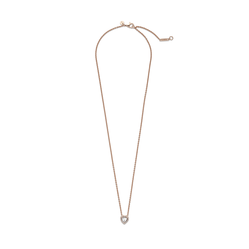 Causa impacto con el collar collier Corazón reluciente. Este collar acabado a mano con enchapado en oro rosa de 14k está inspirado en los elementos del diseño clásico de la colección Pandora Timeless. Está adornado con una piedra central en forma de corazón realzado rodeado por un halo de circonias cúbicas transparentes y en el broche tiene una etiqueta con el logotipo del monograma de la corona O de Pandora. Ajusta la longitud del collar para adaptarlo a tu estilo y úsalo con otras piezas en forma de corazón para una imagen llena de amor.